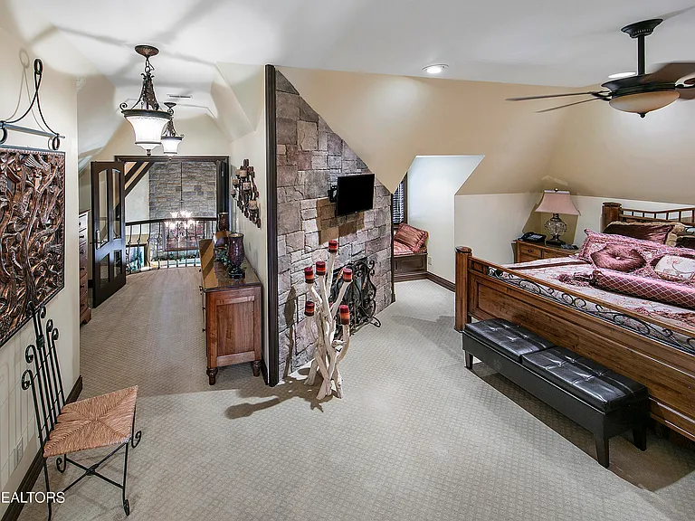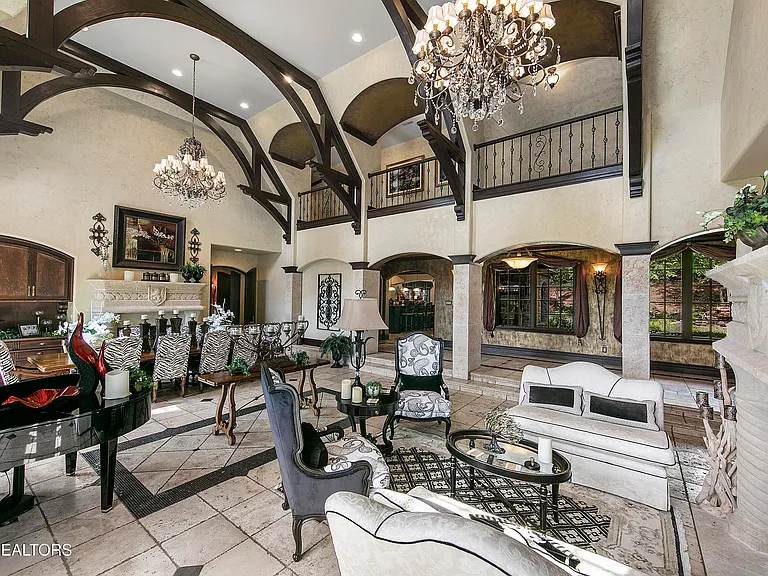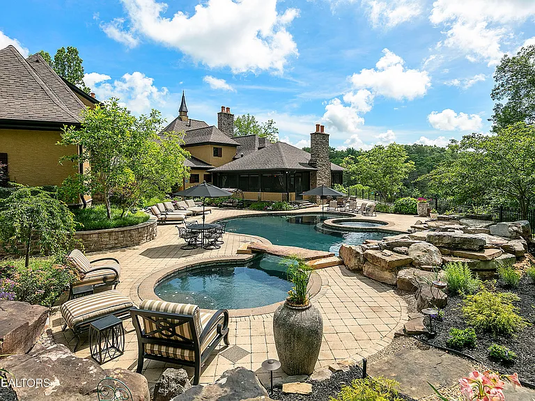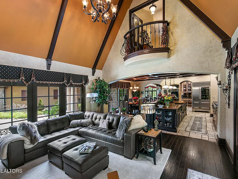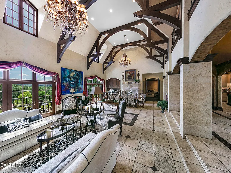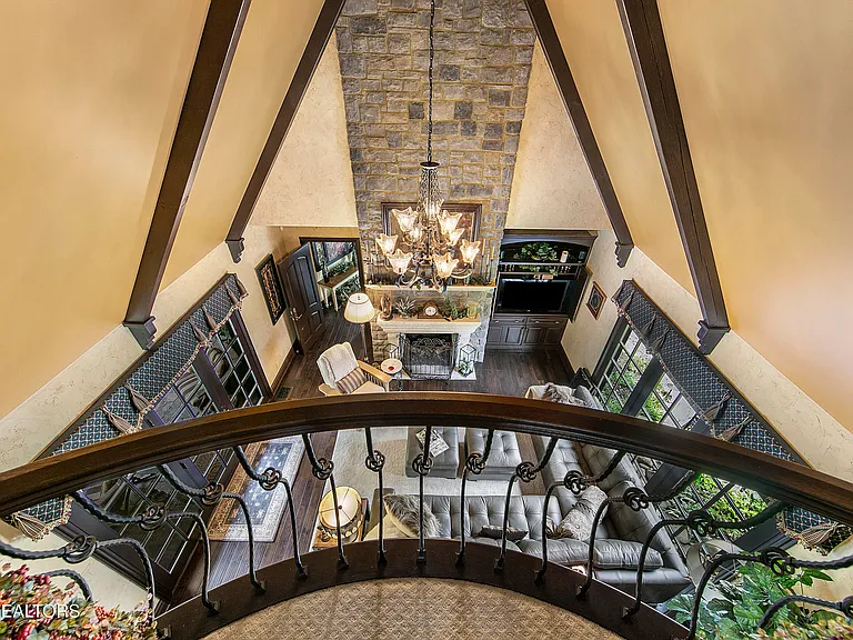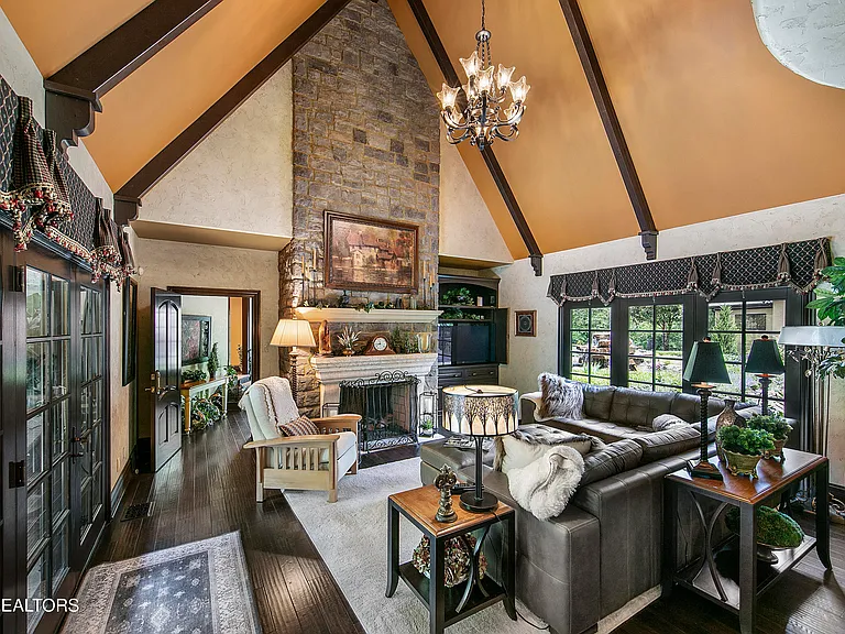 Nestled behind a gated entrance, surrounded by 57.43± pristine acres, this one-of-a-kind estate was designed by world-renowned architect Jack Arnold. Built as a legacy retreat where European elegance meets rustic mountain soul, this one-owner custom residence spans 10,963 sq ft under roof with 5 BR, 5 ensuite baths, includes fully equipped guest apartment. Unmatched craftsmanship includes hand-scraped poplar wood floors, solid wood doors, imported limestone, 9 fireplaces, soaring ceilings up to 25 feet, hand-hewn solid wood beams, R-40+ insulation, lifetime architectural shingles, Kolbe black windows, heated floors in primary bath and kitchen, Italian mosaics, tumbled stone, granite throughout, custom cabinetry, & more. The chef’s & outdoor kitchens feature professional-grade appliances (brands include Sub-Zero, Wolf, Miele, and Viking). Modern systems include high-speed internet, Control4 smart-home features, whole-house water filtration, full irrigation, surround sound, a security system w/ cameras placed strategically. Resort-style amenities include a custom granite saltwater grotto pool, spa, theater room, 1,000-bottle temperature-controlled wine cellar, fitness room, outdoor fireplace, TV projector, hunting grounds, stocked fishing lake, and even a place to land your helicopter. Enjoy incomparable views: sunrise over the mtns, golden-hour light at the terrace, or quiet stargazing beside the bonfire. The unrestricted acreage offers potential for up to 12 add. homesites—ideal for a family compound or luxury retreat. Though completely secluded, you’re just minutes to the Great Smoky Mtns Nat. Park, Gatlinburg, Pigeon Forge, Dollywood, shopping, restaurants, & a short drive from Knoxville Airport & major thoroughfares. A rare chance to own a truly irreplaceable legacy estate where generations gather & milestones are made.