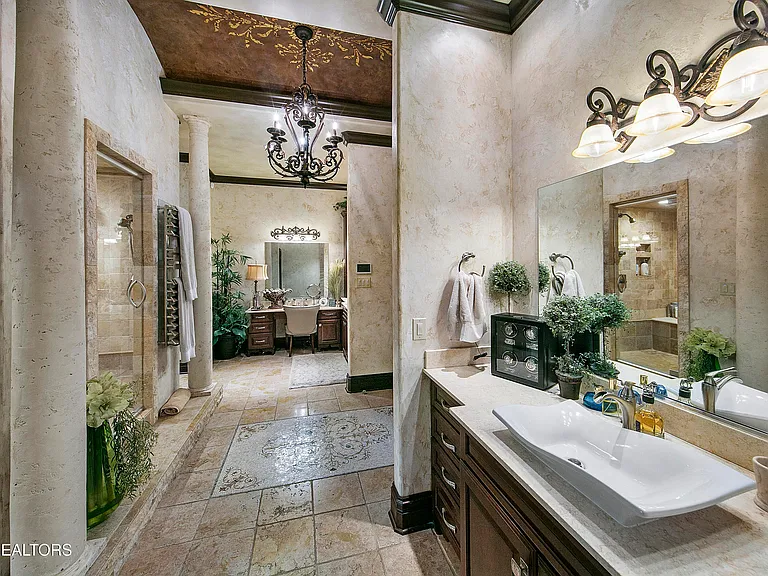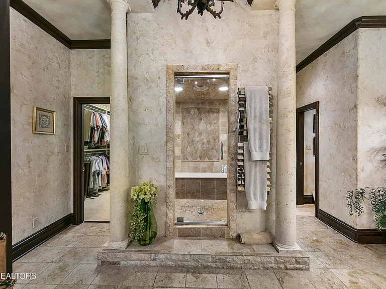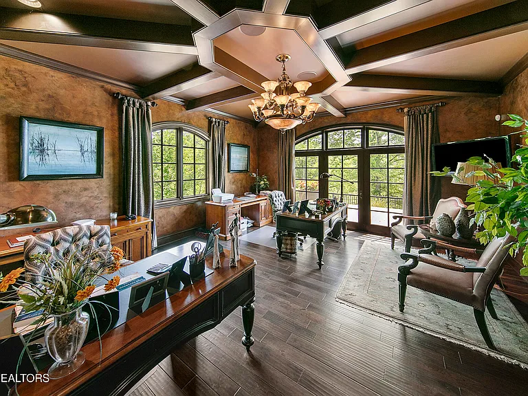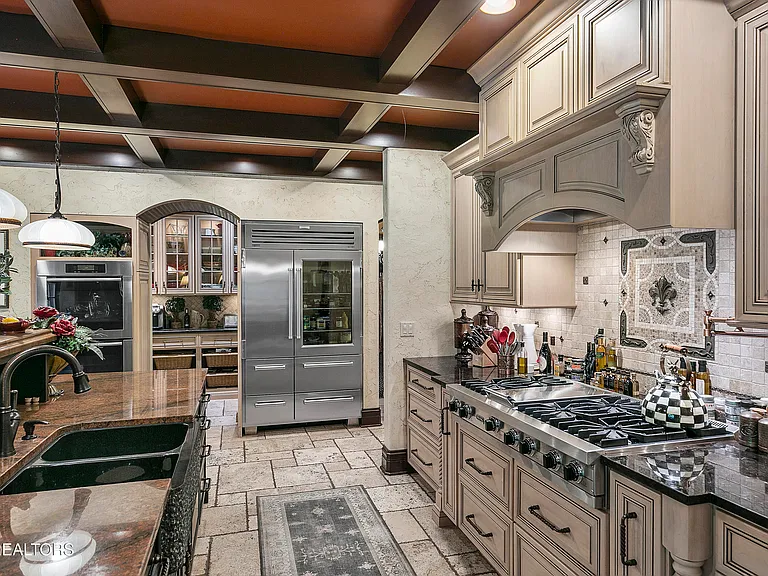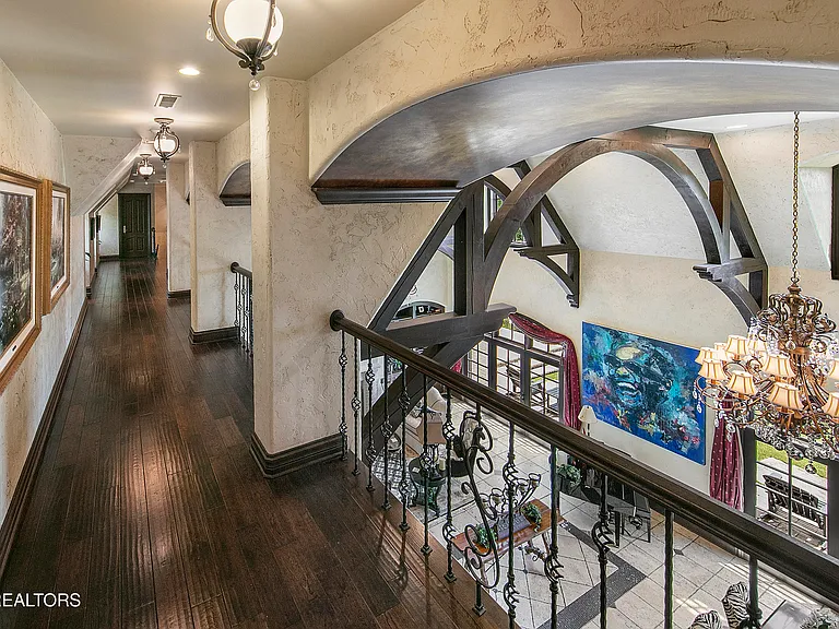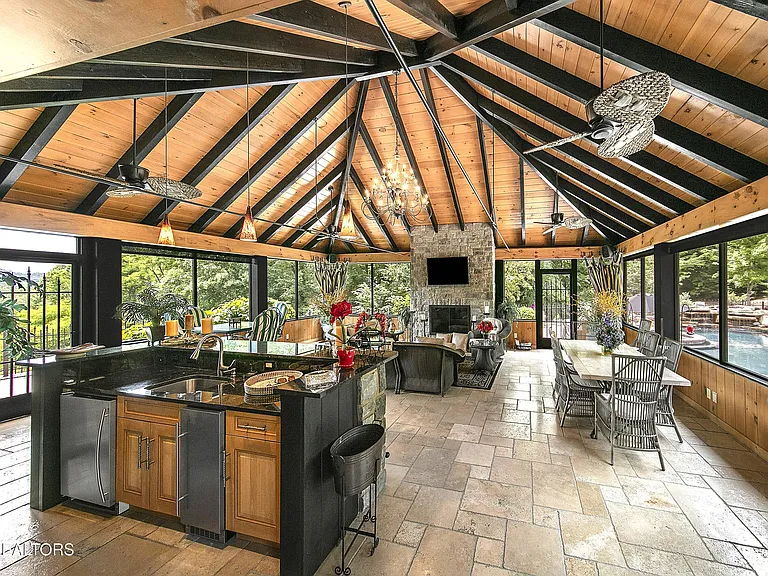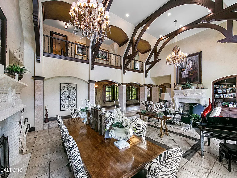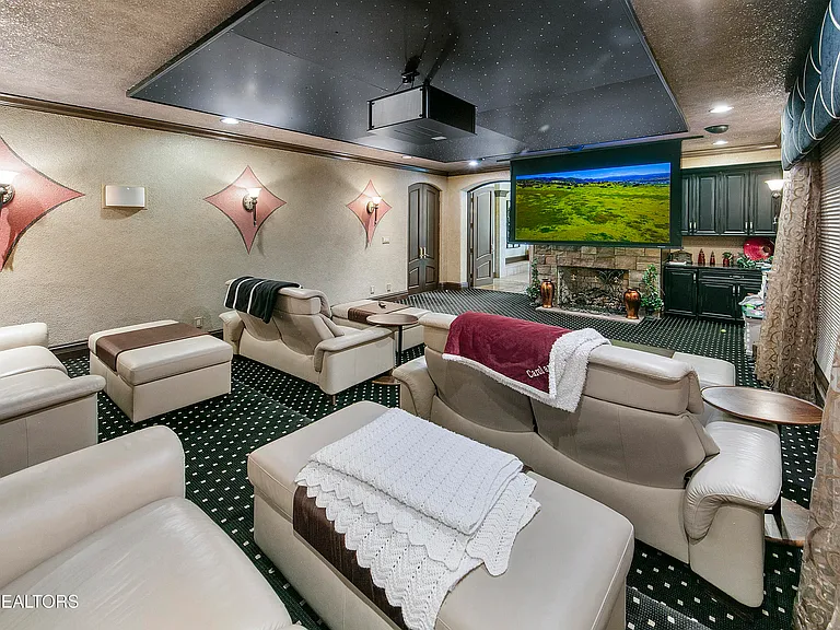 Nestled behind a gated entrance, surrounded by 57.43± pristine acres, this one-of-a-kind estate was designed by world-renowned architect Jack Arnold. Built as a legacy retreat where European elegance meets rustic mountain soul, this one-owner custom residence spans 10,963 sq ft under roof with 5 BR, 5 ensuite baths, includes fully equipped guest apartment. Unmatched craftsmanship includes hand-scraped poplar wood floors, solid wood doors, imported limestone, 9 fireplaces, soaring ceilings up to 25 feet, hand-hewn solid wood beams, R-40+ insulation, lifetime architectural shingles, Kolbe black windows, heated floors in primary bath and kitchen, Italian mosaics, tumbled stone, granite throughout, custom cabinetry, & more. The chef’s & outdoor kitchens feature professional-grade appliances (brands include Sub-Zero, Wolf, Miele, and Viking). Modern systems include high-speed internet, Control4 smart-home features, whole-house water filtration, full irrigation, surround sound, a security system w/ cameras placed strategically. Resort-style amenities include a custom granite saltwater grotto pool, spa, theater room, 1,000-bottle temperature-controlled wine cellar, fitness room, outdoor fireplace, TV projector, hunting grounds, stocked fishing lake, and even a place to land your helicopter. Enjoy incomparable views: sunrise over the mtns, golden-hour light at the terrace, or quiet stargazing beside the bonfire. The unrestricted acreage offers potential for up to 12 add. homesites—ideal for a family compound or luxury retreat. Though completely secluded, you’re just minutes to the Great Smoky Mtns Nat. Park, Gatlinburg, Pigeon Forge, Dollywood, shopping, restaurants, & a short drive from Knoxville Airport & major thoroughfares. A rare chance to own a truly irreplaceable legacy estate where generations gather & milestones are made.