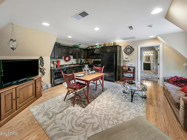 Guest wing apartment with full kitchen, eat-in area, living room, and bedroom/full bath